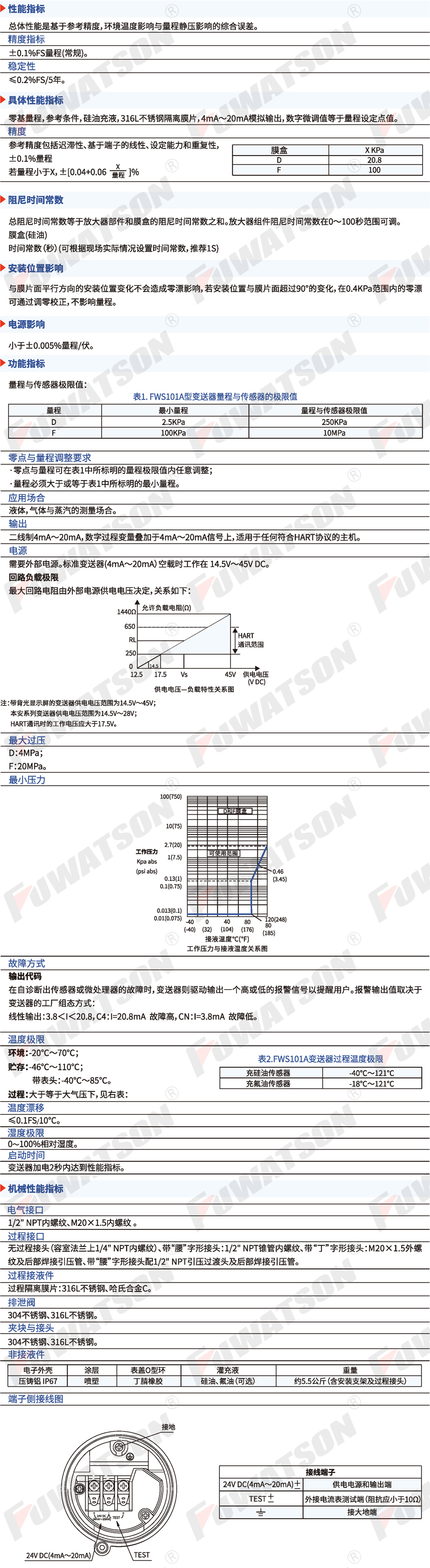FWS101A系列测量精度0.1%FS,最高0.075%FS;采用双过载保护技术;过载能力强,单向压力可达20MPa;可270º旋转的就地显示屏幕;方便的就地零点、满点设置调校功能;拥有标准HART总线通讯模式与...