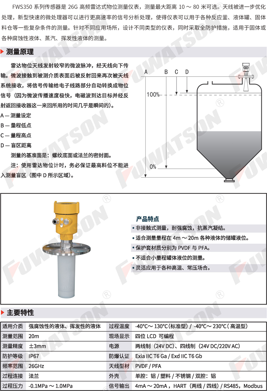 FWS352 26GHz高频雷达物位计